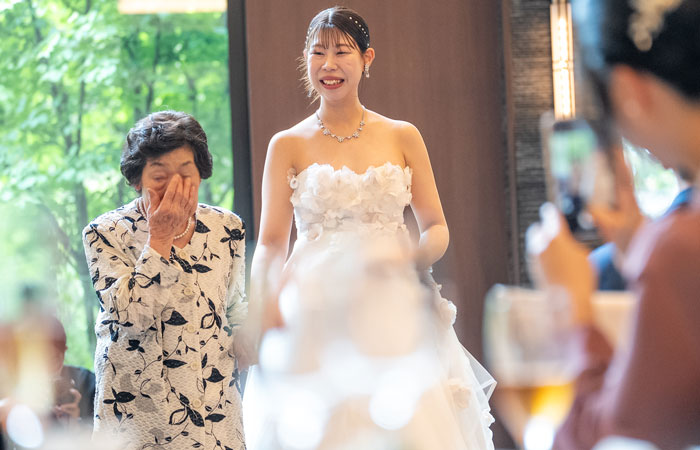 新婦お色直しで祖母と退場するサプライズを計画した。