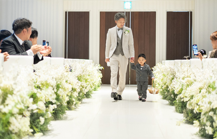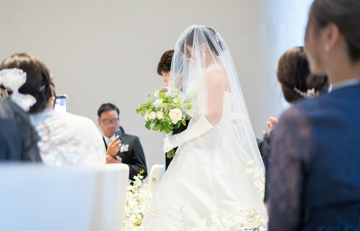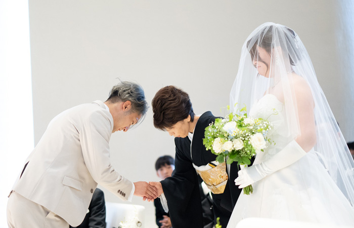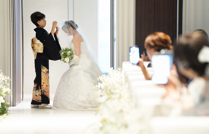 特別な雰囲気と両親とのイベント(ブートニアセレモニー、ベールダウン、グローブトス)